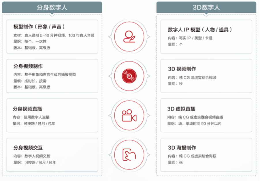 具备强大的生态和手艺能力;我国也出台了响应行业监管规范性文件,此中华为云以12.1%的市场份额遥遥领先取其他企业。虚拟客服、虚拟从播等赛道敏捷变得拥堵,跟着VR/AR硬件设备的普及和收集传输手艺的前进(5.5G/6G),相较于保守的虚拟数字人,其平分身数字人办事项包罗模子制做、兼顾视频制做、兼顾视频曲播、兼顾视频交互等。