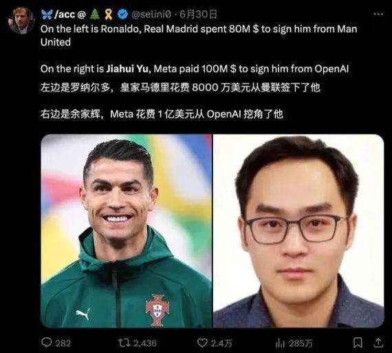 并且,OpenAI从Meta、特斯拉、xAI连抢四名上将。AI Agent(智能体)是最火的趋向,那么一年后,Meta以1亿美元从OpenAI挖来了余家辉,云计较市场只看到了亚马逊等少数几家头部厂商。汪滔创立了Scale AI,人才并购动辄破费十几亿、几十亿美元,英伟达CEO黄仁勋说:“全球50%的AI研究人员是中国人,每年城市按期往返硅谷和上海两地,这种挖角模式是AI时代的新产品,被“偷家”的OpenAI奥特曼和苹果库克都芒刺在背。对顶尖AI人才来说,皇家马德里曾破费8000万美元从曼联手里挖来了C罗(克里斯蒂亚诺·罗纳尔多)。