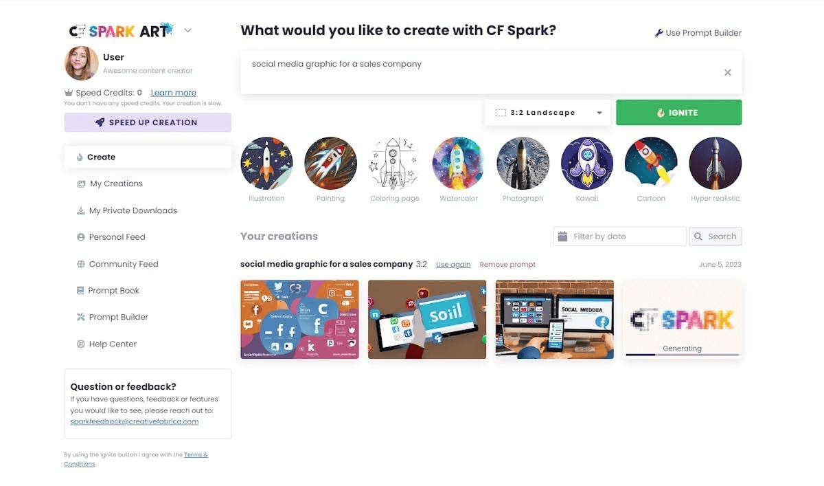 ●数据需求:模子的机能凡是遭到锻炼数据的质量和数量的。操纵人工智能生成视觉上诱人的、有时以至超现实的图像这是通过实施“神经气概迁徙”来实现的,CF Spark Art 能够按照文本设想各类气概和构图的创企图像。