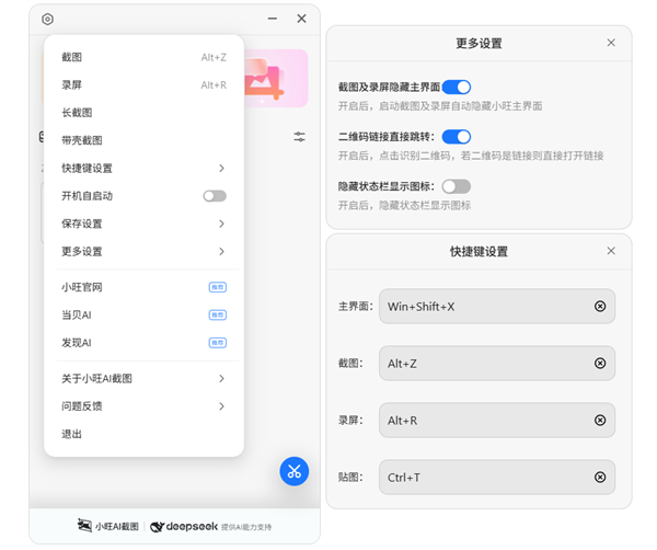 小旺AI截图接入了DeepSeek大模子,早已成为用户日常办公和进修的得力帮手。其轻量化的安拆包(仅约8MB)和无告白设想,用户能够按照小我习惯选择能否显示形态栏,进一步优化了用户体验并新增加项适用功能。以下是其次要功能特点:近日,极大提拔了跨言语协做和消息处置的效率。画板功能添加了对Shift键的支撑,用户能够通过环节词快速检索汗青记实,做为一款基于DeepSeek大模子的万能AI截图东西,做为一款集截图、录屏、AI识别、标注于一体的万能东西,新版本支撑设置躲藏形态栏显示图标,软件内置了防破解机制,